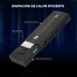Incluye un chaleco metálico de disipación de calor que mejora la eficiencia térmica hasta un 20 %, manteniendo tu SSD más frío durante sesiones de trabajo o transferencia intensiva de datos.