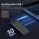 Además de carcasa, incluye 2 puertos USB2.0, ranura SD y ranura TF, permitiendo conectar periféricos y tarjetas de memoria sin ocupar otros puertos de tu equipo.