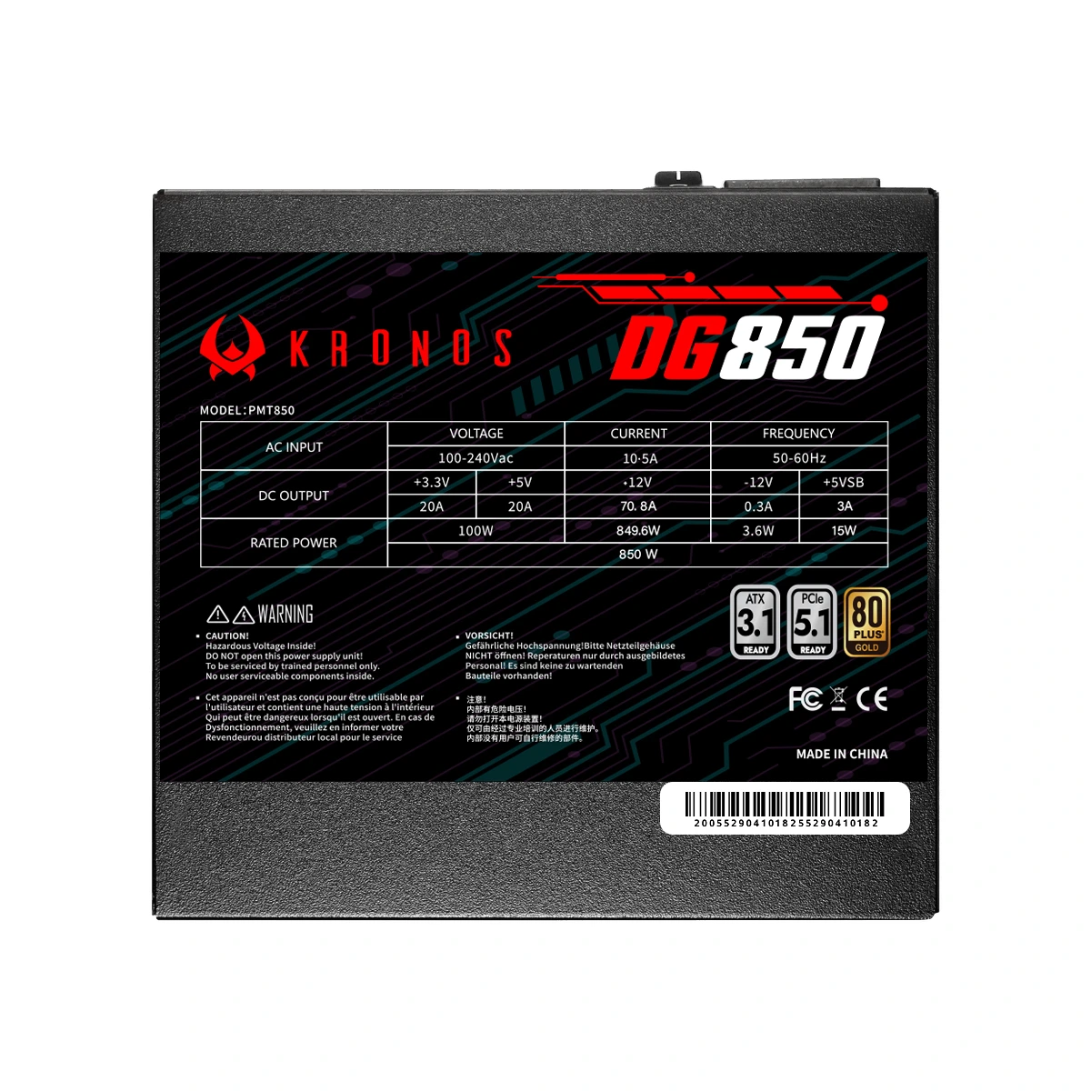 La Fuente de Poder Kronos DG Series 850W 80+ Gold Full Modular está diseñada para entregar energía estable y eficiente en equipos de alto rendimiento, incorporando tecnología Active PFC de alta eficiencia, ventilación avanzada y diseño DC-DC para una mejor regulación de voltaje. Es una solución orientada a PCs gaming exigentes que requieren orden interno, buena disipación térmica y compatibilidad con hardware actual.