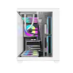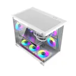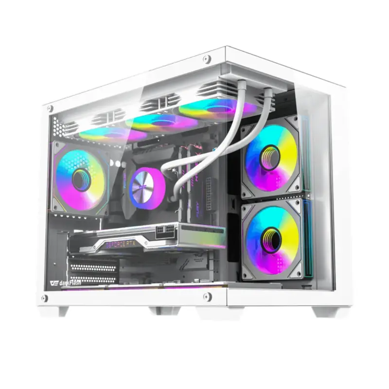 Este gabinete mATX de Darkflash combina una estética moderna sin pilares con una estructura optimizada para ventilación y hardware de alto rendimiento. Su doble panel de vidrio templado permite una vista panorámica de 270°, ideal para setups con iluminación, y ahora con 6 ventiladores preinstalados, asegurando un excelente flujo de aire sin necesidad de inversión adicional.