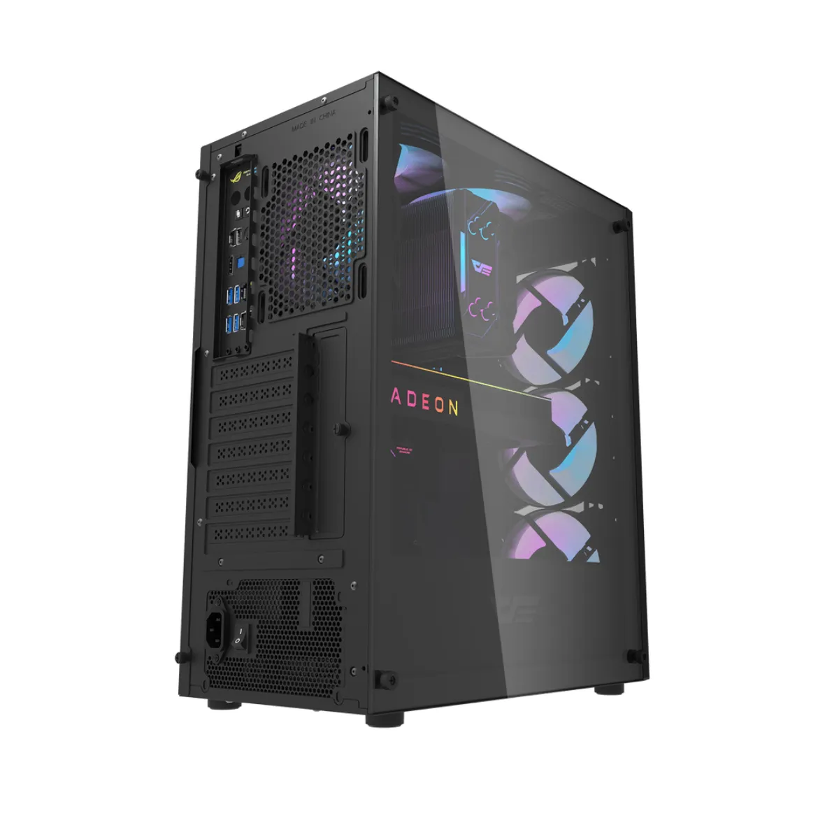Panel frontal y lateral en vidrio templado que ofrecen una visual completa del interior del equipo.