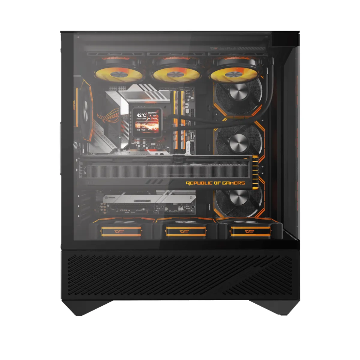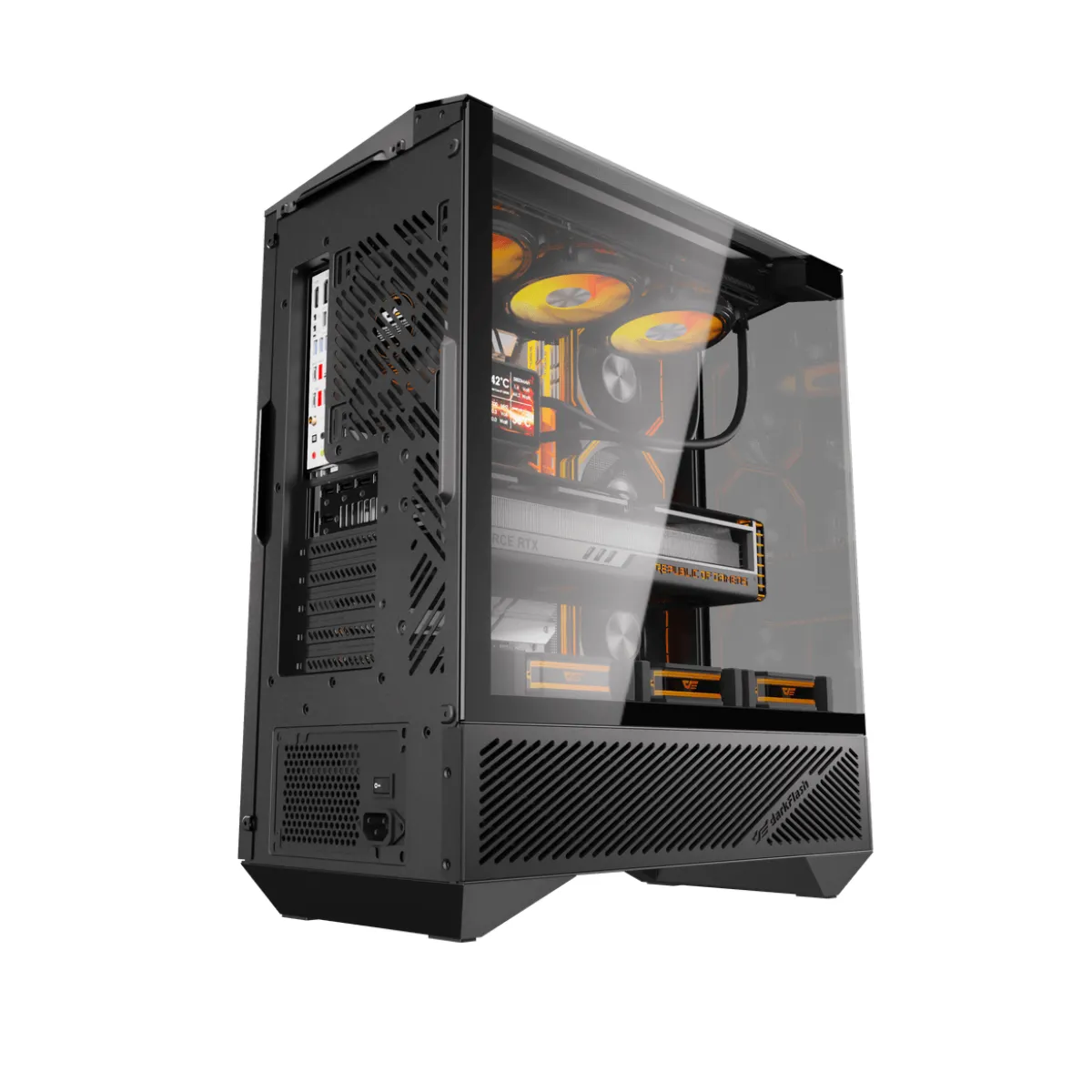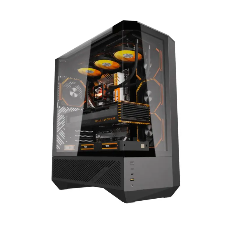 Experimenta un gabinete moderno con diseño panorámico y arquitectura optimizada, ideal para setups limpios, potentes y visualmente impactantes.