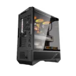Incorpora paneles de vidrio templado en tres lados, ofreciendo una visual completa del hardware y resaltando configuraciones con iluminación ARGB.