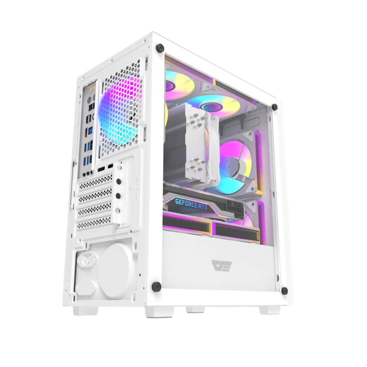 Gabinete Gamer Darkflash M305 Panel Vidrio 3Fan ARGB mATX White