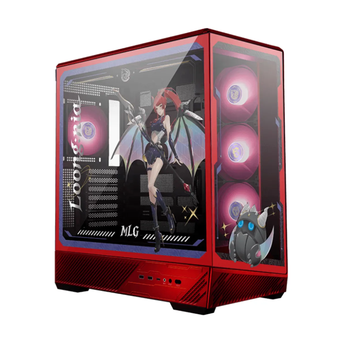 Gabinete gamer de alto flujo de aire con diseño panorámico y edición exclusiva inspirada en Loong: Nia.