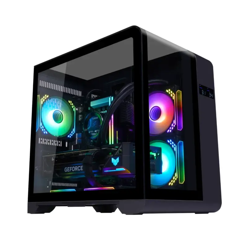 Una de sus grandes innovaciones es la pantalla digital integrada, que muestra en tiempo real la temperatura de CPU y GPU, así como el porcentaje de uso de cada una, facilitando un monitoreo rápido y preciso del rendimiento. Además, cuenta con un sistema de iluminación ARGB flexible, compatible con estándares LED Sync, para crear ambientes personalizados y sincronizados con tu hardware.