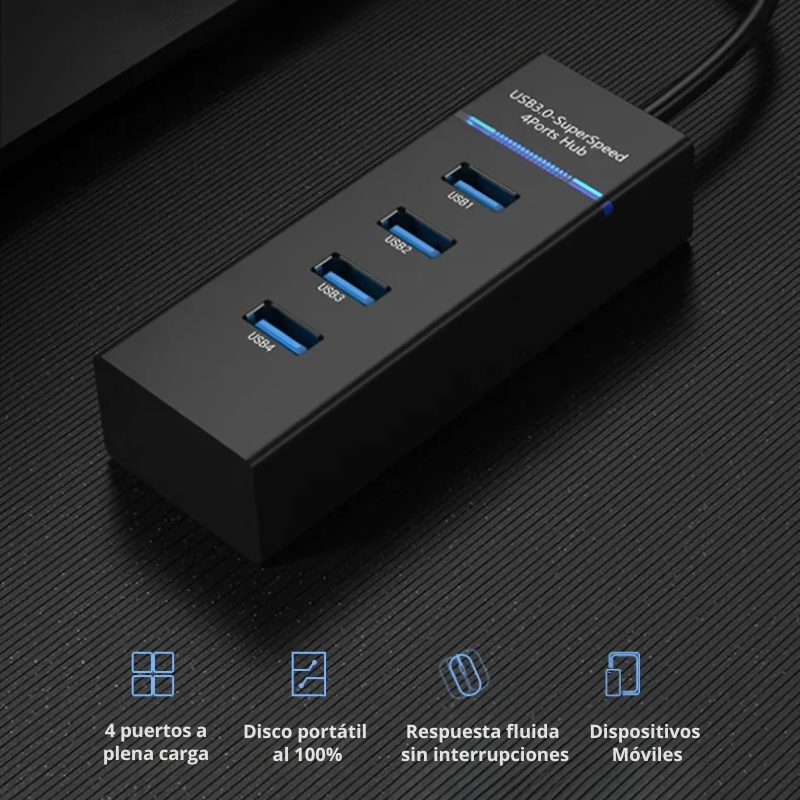 HUB USB 4 en 1 – 4 Puertos USB 3.0 | 5 Gbps | 30 cm Compacto