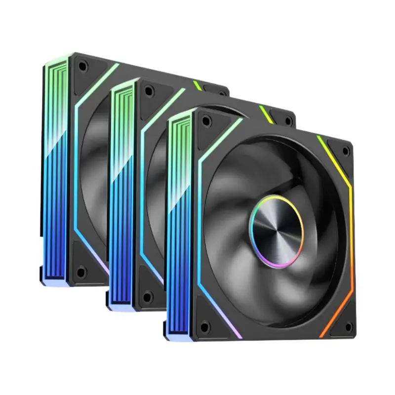 En términos de rendimiento, los ventiladores entregan un flujo de aire de hasta 56.8 CFM con una presión estática de 2.0 mmH2O, garantizando un enfriamiento estable y eficiente incluso en sesiones intensas de gaming o cargas de trabajo exigentes. Su sistema de rodamientos hidráulicos asegura un funcionamiento silencioso, estable y de larga duración, alcanzando una vida útil estimada en 50.000 horas.