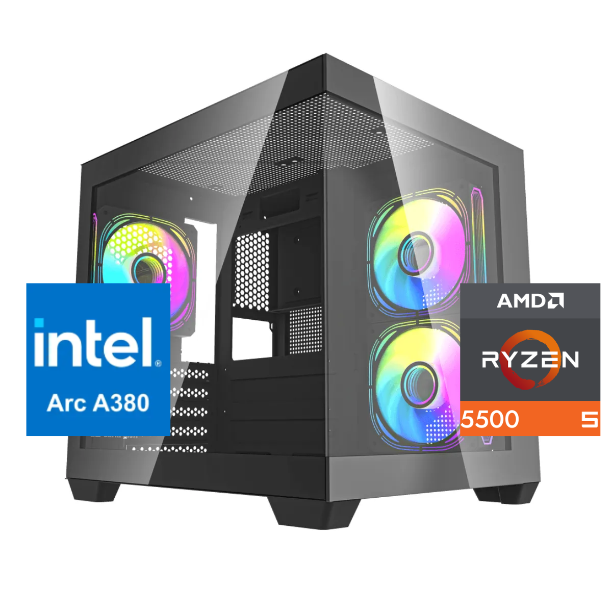 - Tarjeta Gráfica: Intel Arc A380 6GB OC GDDR6. La puerta de entrada a la nueva generación de gráficos Intel. Con 6GB de VRAM, soporte para hardware de última generación y el increíble códec AV1 que revoluciona el streaming y la edición de video.
