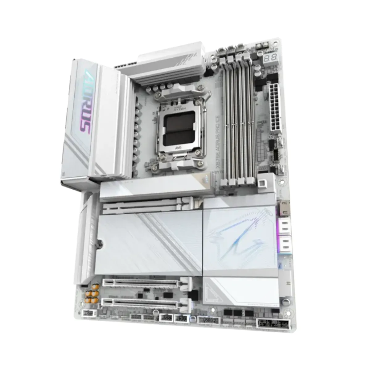 La Gigabyte X870E AORUS PRO ICE es una placa madre de alto rendimiento pensada para gamers exigentes, creadores de contenido y entusiastas que buscan una base sólida, moderna y preparada para el futuro. Compatible con procesadores AMD Ryzen series 7000, 8000 y 9000, combina potencia eléctrica, conectividad de nueva generación y un diseño orientado a facilitar el armado y la estabilidad del sistema.