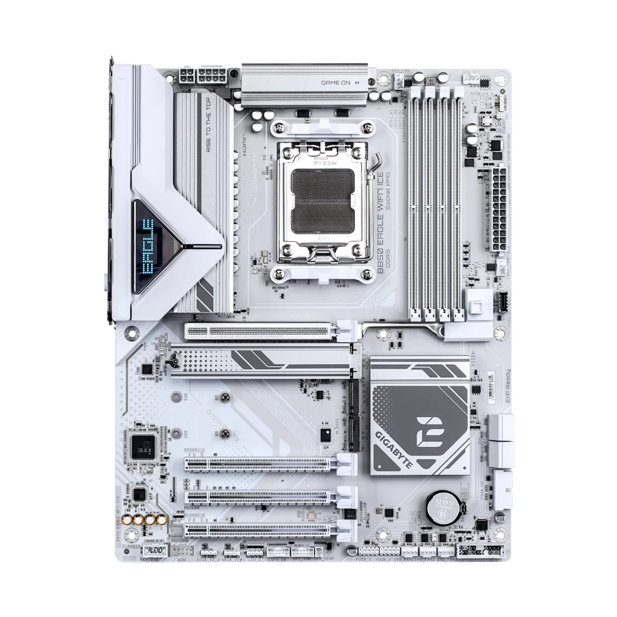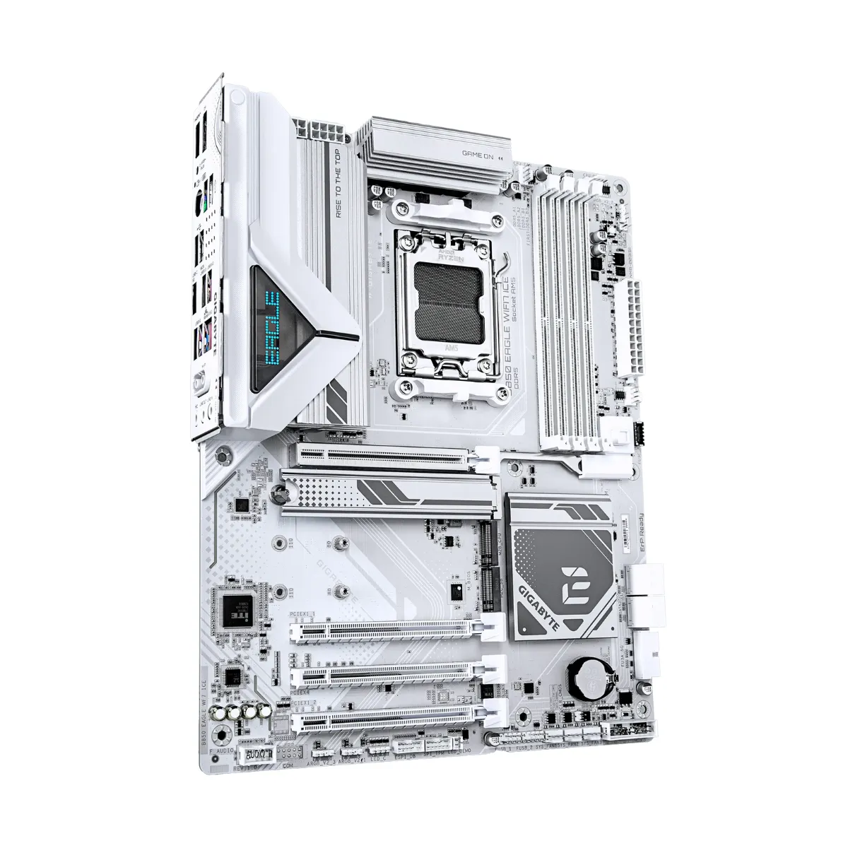 La GIGABYTE B850 EAGLE WIFI7 ICE está diseñada para quienes buscan una plataforma sólida, moderna y con el mejor balance entre rendimiento, durabilidad y facilidad de uso. Equipada con el socket AM5, soporta procesadores AMD Ryzen™ series 9000, 8000 y 7000, incluyendo compatibilidad con memorias DDR5 de alto rendimiento (hasta 8200 MT/s en overclocking). Su diseño de VRM digital 8+2+2 fases con DrMOS de 60A garantiza una entrega de energía estable y eficiente, incluso para CPUs multinúcleo de alta demanda, mientras que su PCB de 6 capas con componentes premium asegura una señal limpia y confiable.