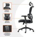 - Diseño ergonómico con respaldo acolchado y soporte lumbar mecánico