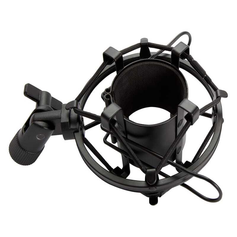 Además, incluye un sistema de montaje con rosca interna de 5/8” y adaptador de 3/8”, compatible con una amplia variedad de micrófonos condensadores de diferentes diámetros. Su interior cuenta con una almohadilla de esponja protectora, que asegura el micrófono y evita daños durante su uso.