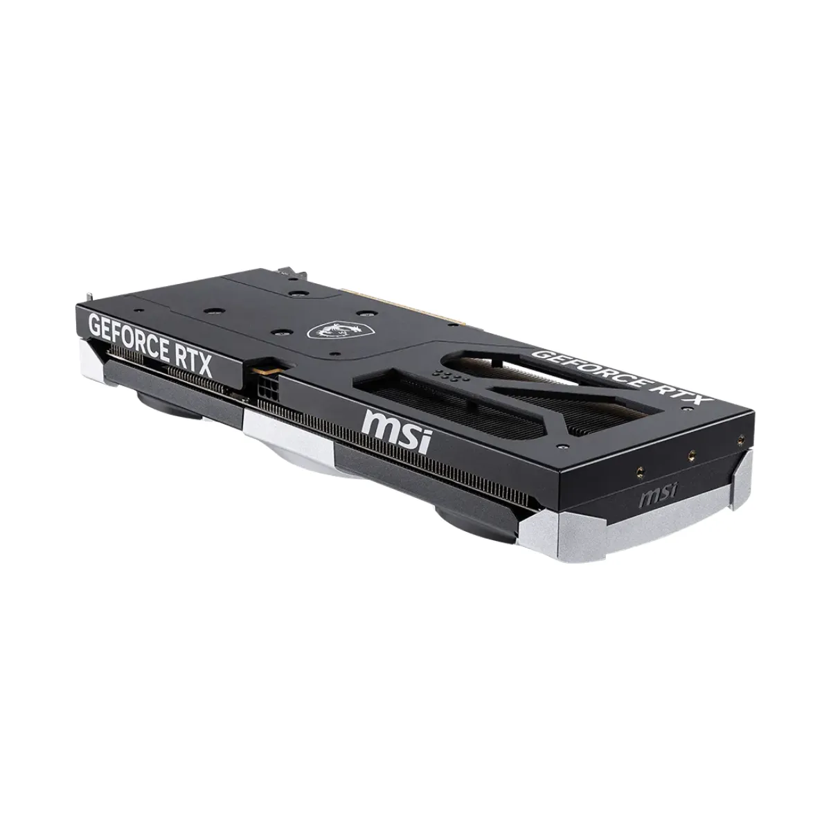 El sistema térmico VENTUS 3X de MSI incorpora tres ventiladores TORX Fan 5.0 que optimizan el flujo de aire y reducen el ruido, junto a una placa trasera metálica que mejora la disipación térmica y la rigidez estructural.