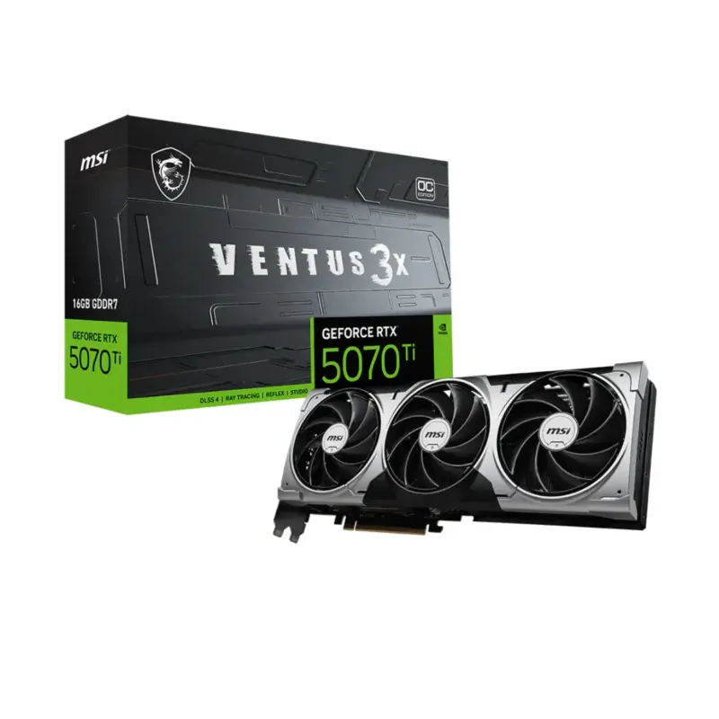 La MSI GeForce RTX 5070 Ti 16G VENTUS 3X OC está diseñada para quienes buscan alto rendimiento gráfico, eficiencia térmica y una estética sobria que encaje en cualquier configuración. Basada en la arquitectura NVIDIA Blackwell y equipada con memoria GDDR7, entrega la potencia necesaria para gaming avanzado, creación de contenido y cargas de trabajo aceleradas por inteligencia artificial, manteniendo un enfoque claro en lo esencial.