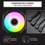 Compatible con sistemas ARGB de 5V, permite sincronización directa con placas base mediante tecnologías como ASUS Aura Sync, MSI Mystic Light y Gigabyte RGB Fusion, ofreciendo hasta 16,8 millones de colores para una personalización completa del setup.